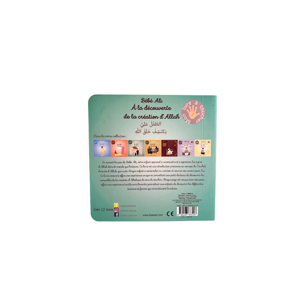 Bébé Ali – À la découverte de la création d’Allah est un livre d’éveil spécialement conçu pour les tout-petits, dès 12 mois. Inspiré de la pédagogie Montessori, il invite l’enfant à découvrir le monde qui l’entoure à travers les sens, en particulier le toucher.