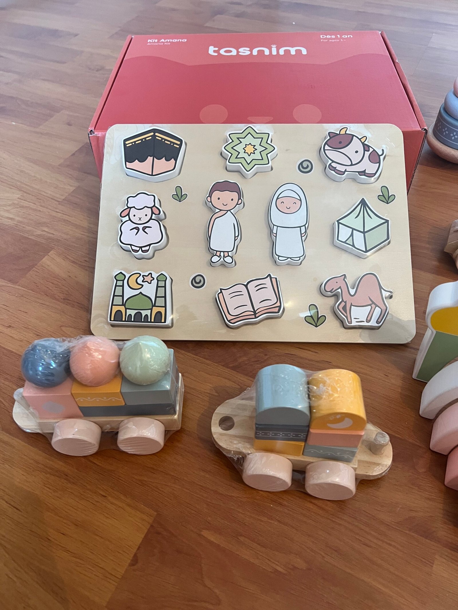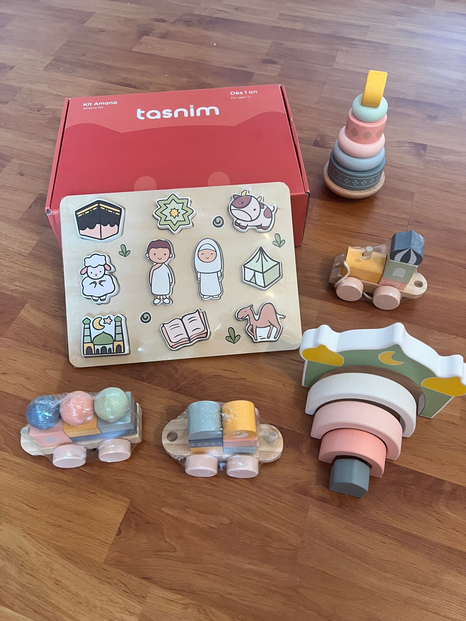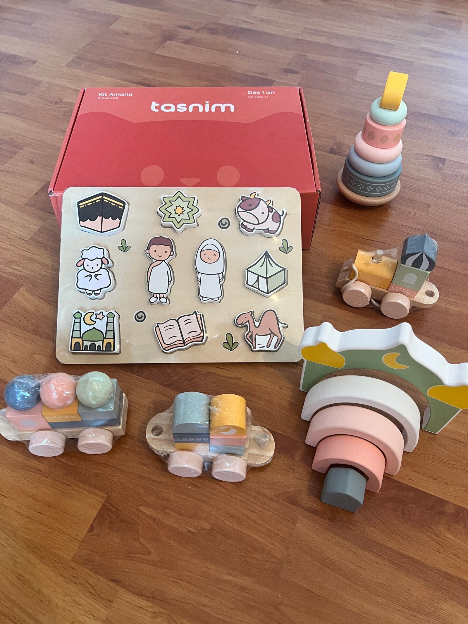 Le coffret Amana contient 4 magnifiques jouets en bois, pensés pour accompagner vos tout-petits. Inspiré de la pédagogie Montessori, ce kit Amana aide votre enfant à s’épanouir dès ses premiers mois : – développement sensoriel – éveil à la spiritualité et découverte de la religion – motricité fine et coordination œil-main – apprentissage de vocabulaire – curiosité et exploration naturelle Chaque jeu accompagne votre bébé au fil des mois et favorise un éveil doux et ludique de sa foi. Ce coffret sera également idéal pour occuper votre enfant pendant le mois de Ramadan !