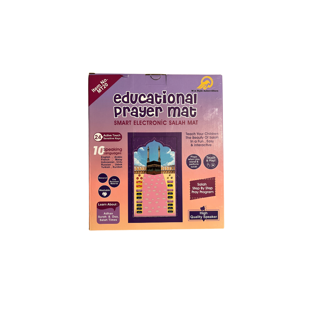 Offrez à votre enfant une manière simple, ludique et motivante d’apprendre la prière avec ce tapis de prière interactif éducatif.
